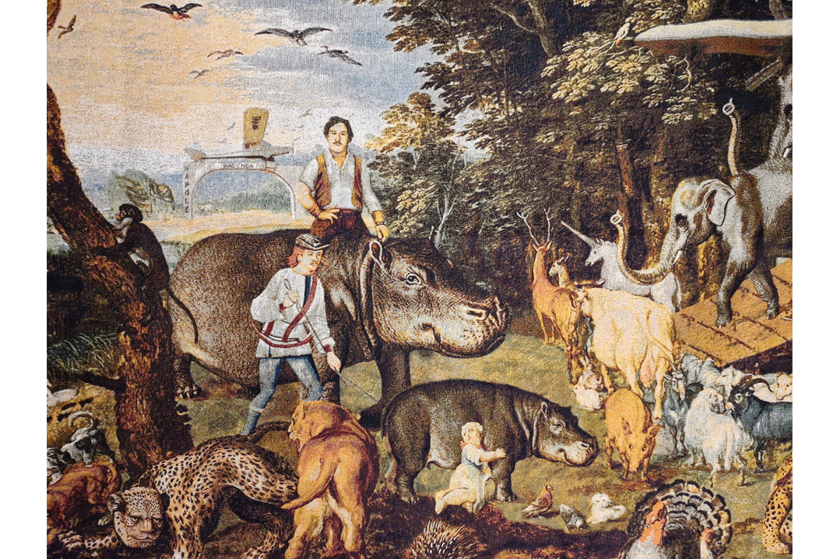 Siguiendo la visita al tercer piso nos enfrentamos a tapices de inspiración medieval y renacentista donde aparecen personales políticos, expresidentes y próceres representados en escenas del imaginario colectivo donde se aborda la historia reciente de Colombia o Venezuela, a modo de ejemplo. Un arca con animales que arriban a la Hacienda Nápoles del narcotraficante Pablo Escobar, o el expresidente venezolano Hugo Chávez en su lecho de muerte frente a una corte que lo asiste, son algunas de las provocadoras imágenes propuestas por Castro en esta interesante muestra donde otros objetos polemizan la política y sus simbologías. El artista evidencia la importancia del mito mediante la contraposición del mito antiguo versus el mito contemporáneo, en una ecuación interesante de la apropiación de las imágenes clásicas de la historia del arte.