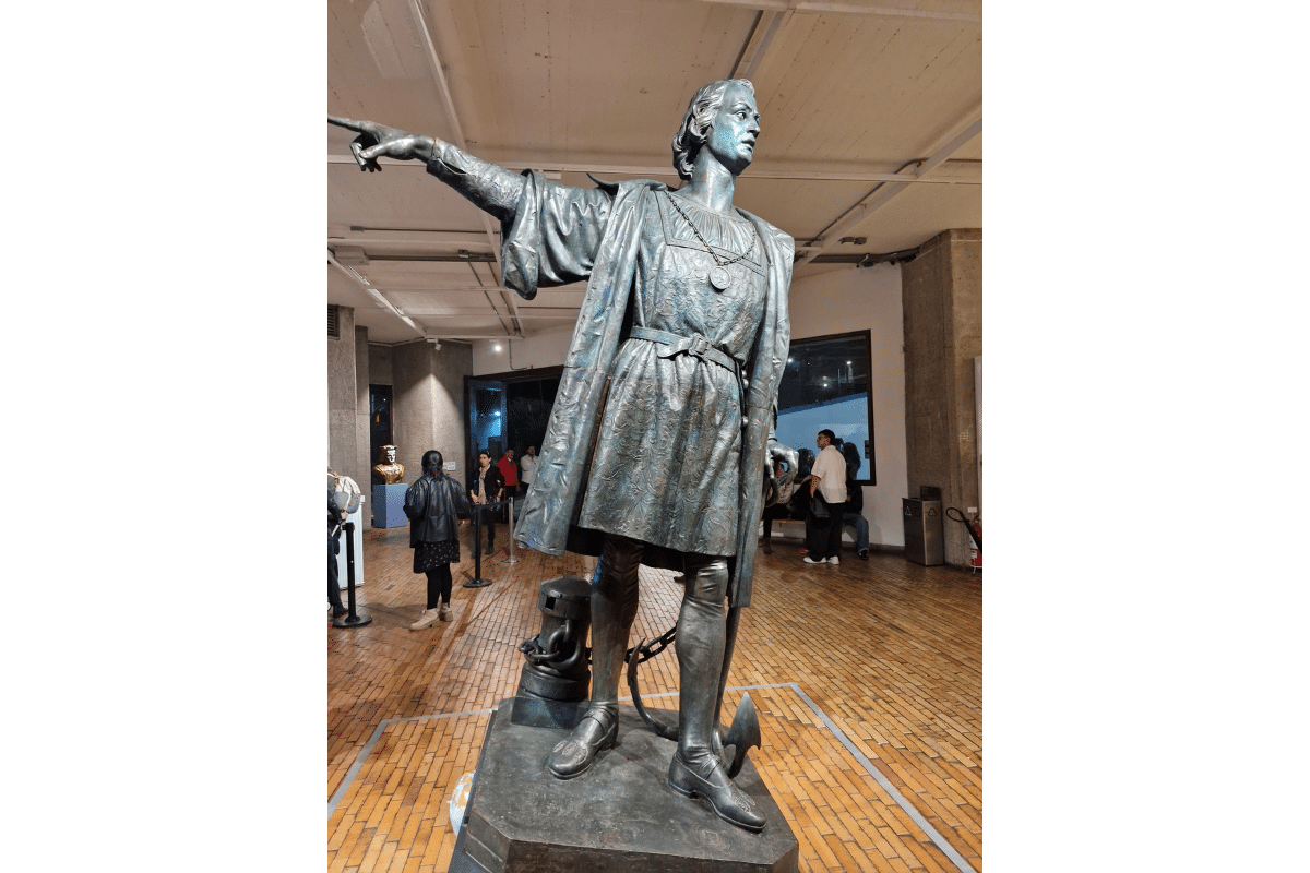 El público que se enfrentó a esta exhibición pudo encontrarse con dos grandes estatuas de Colón y de la Reina Isabel la Católica en el hall principal del museo, elementos que hasta el 11 de junio de 2021 se ubicaron en la tradicional avenida El Dorado de la capital, y que debieron ser retiradas tras el intento de ser derribadas por comunidades indígenas. Es evidente en este emplazamiento la lectura crítica que el artista propone a la historia americana y su cambio de significado, que se plantea en el actual debate sobre la monumentalidad pública presente en varios países de nuestro continente.