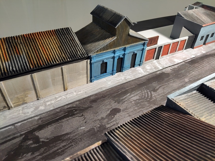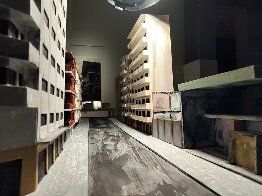 El retablo fue abriendo espacio a la maqueta, y mediante instalaciones, fotografías y otros tipos de montaje – a menudo articulados por estas piezas tridimensionales – Leonardo Portus fue desarrollando un trabajo que pone en el centro del problema a la ciudad, rememorándola, proyectándola e imaginándola.